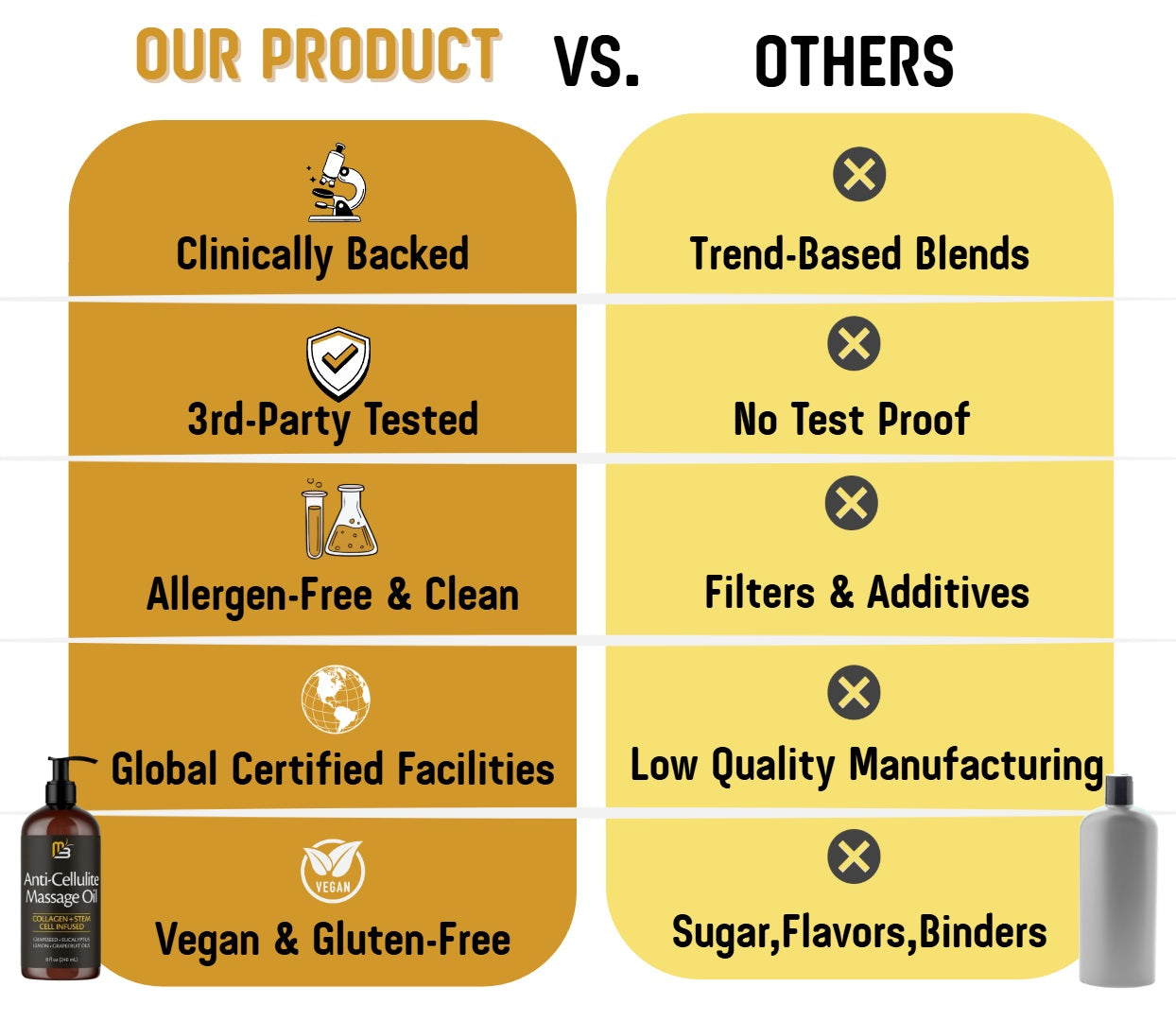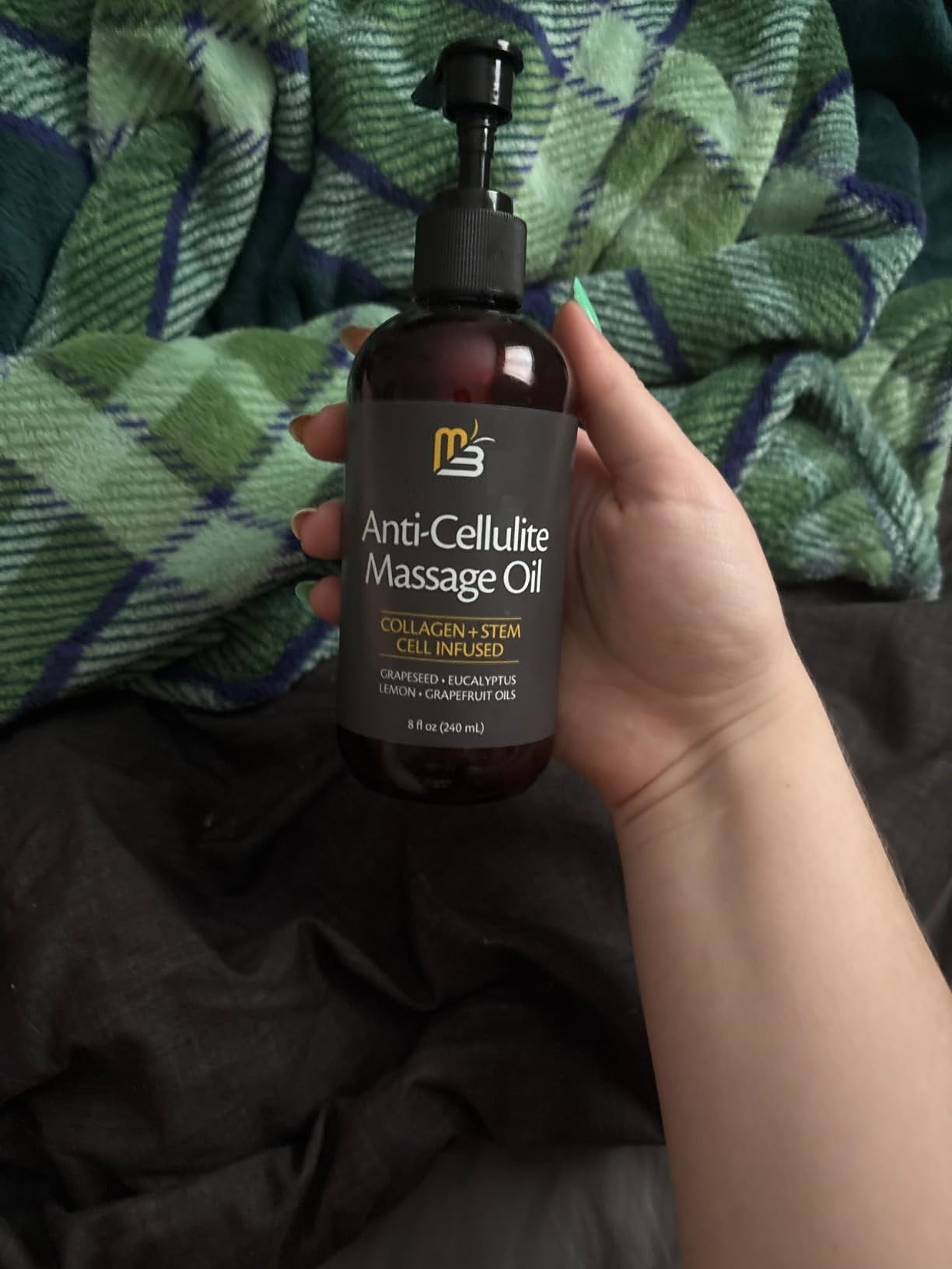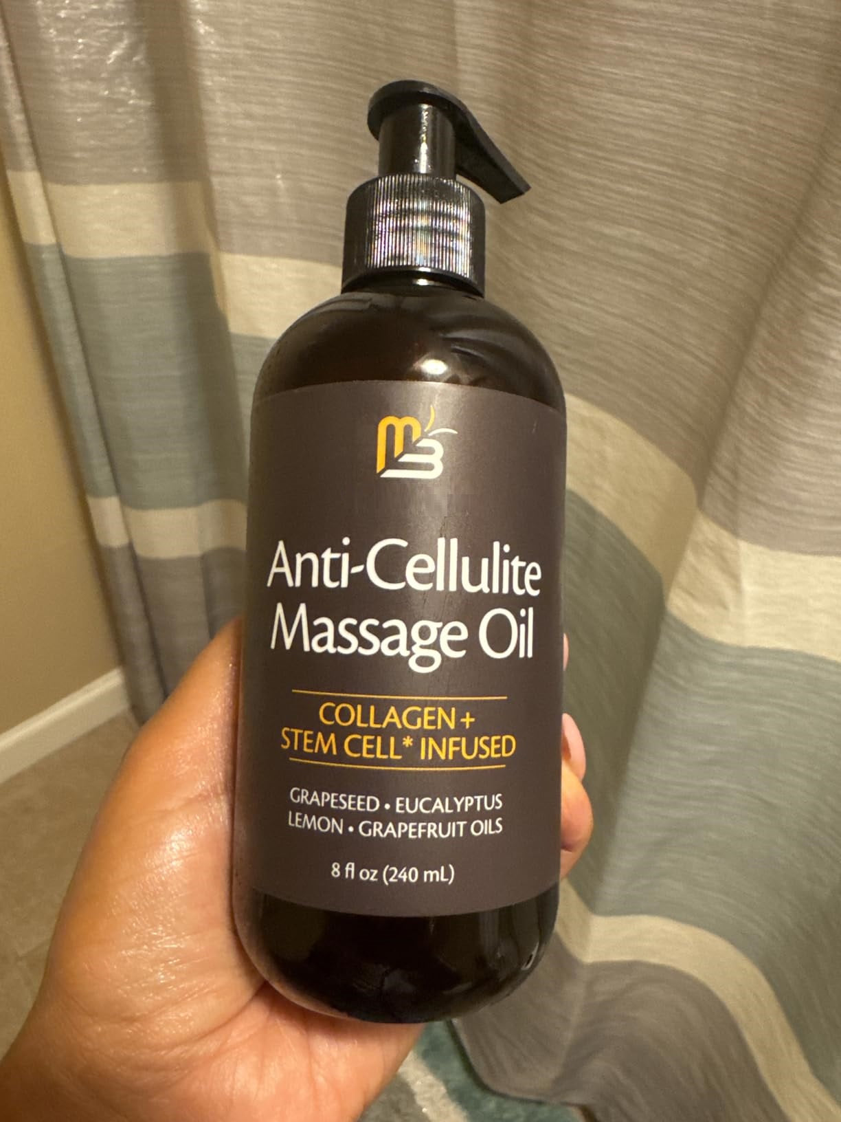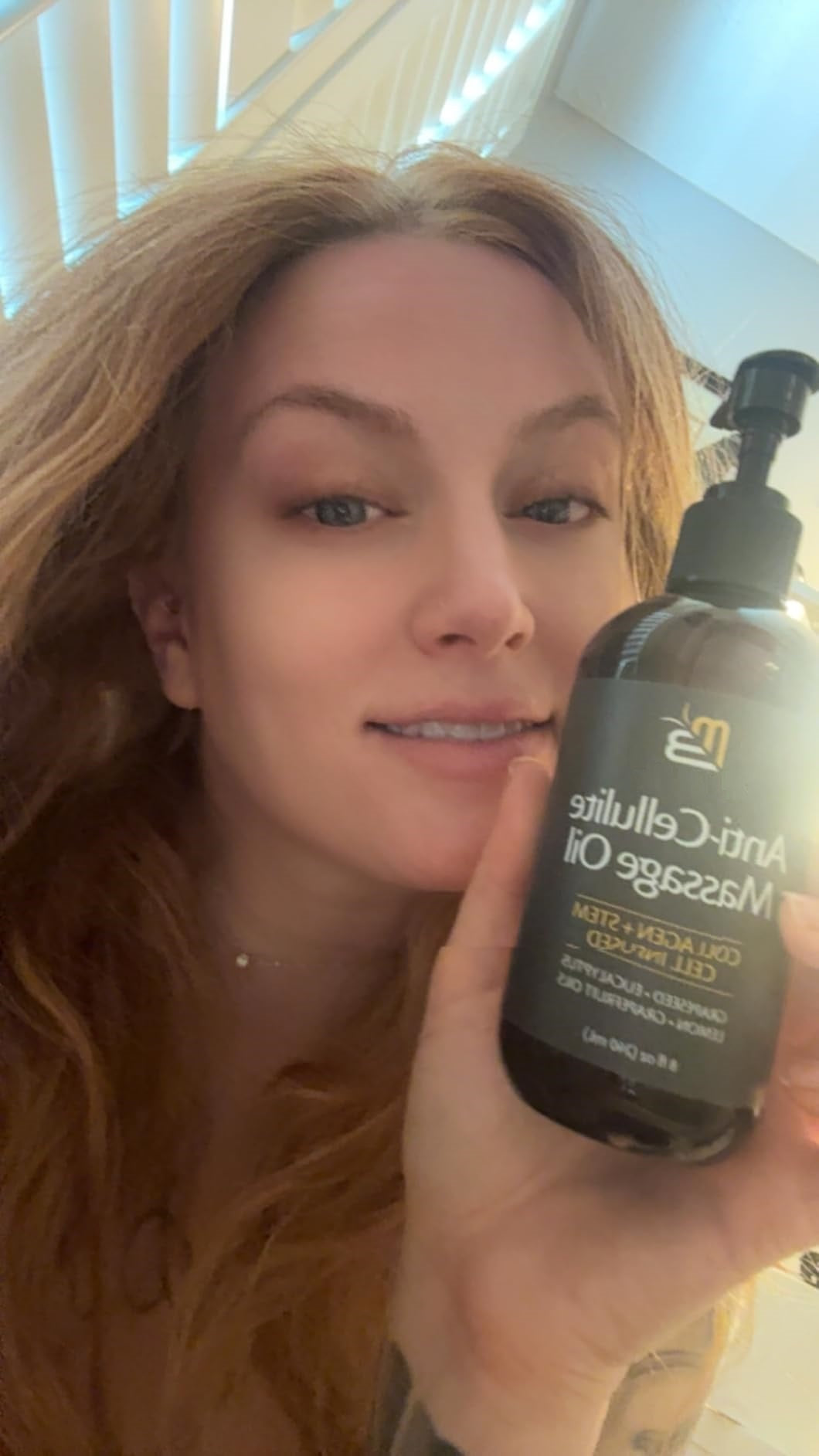 Yes, this is specifically formulated to target cellulite. The combination of circulation-boosting oils (grapefruit, lemon, eucalyptus) plus active massage application breaks down fat deposits, improves lymphatic drainage, and smooths dimpled texture. Most women see visible improvement within 3-4 weeks of daily use.